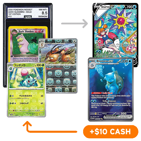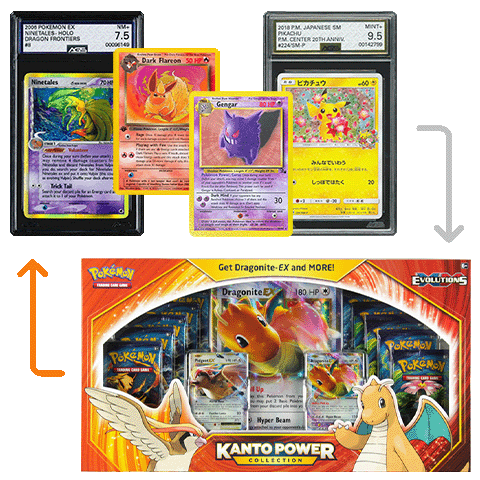 Ninetales 8/101 (AGS 7.5), Pikachu 224/SM-P (AGS 9.5), Gengar 20/62, Dark Flareon 35/82